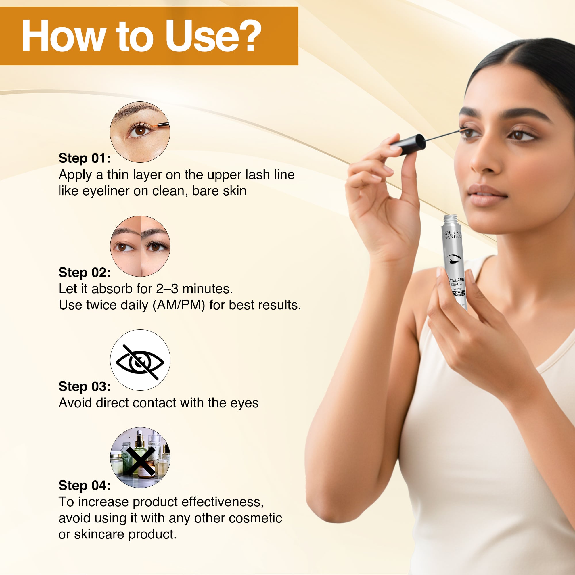 - Nourish Mantra eyelash growth serum supports healthier-looking lashes through regular use and mindful application.